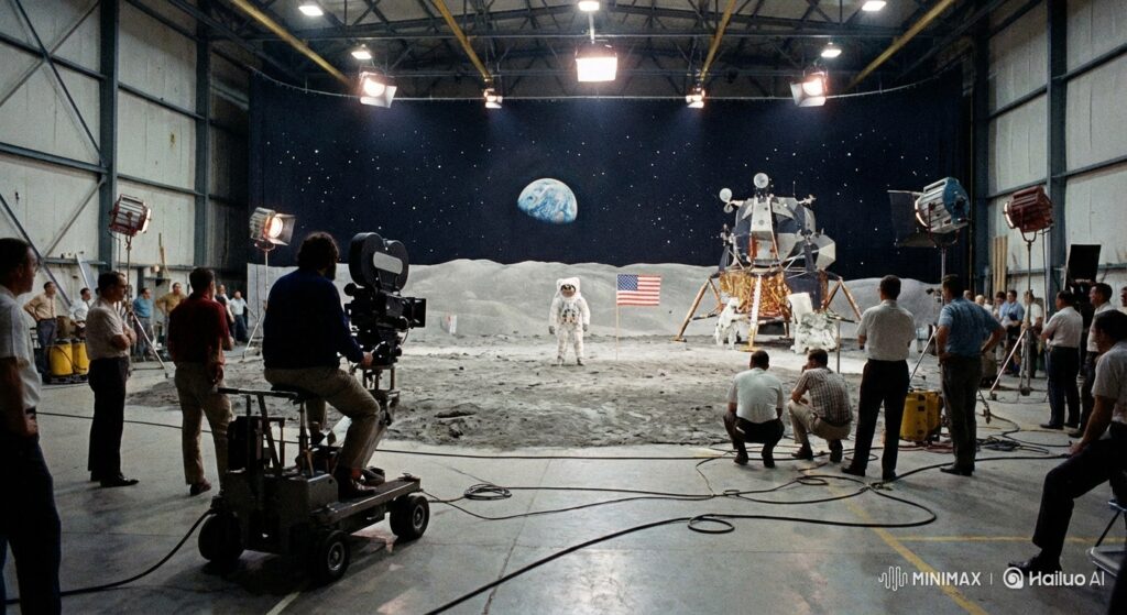 • Perché le ombre non sono parallele?: Sulla Luna non esiste un’unica fonte di luce “pulita”. Il Sole illumina direttamente, ma la superficie stessa riflette luce (albedo lunare ~12%), creando un secondo “faro” diffuso. Questo spiega ombre inclinate, riflessi negli elmetti e assenza di neri totali — effetti impossibili da replicare con i fari da studio del 1969.